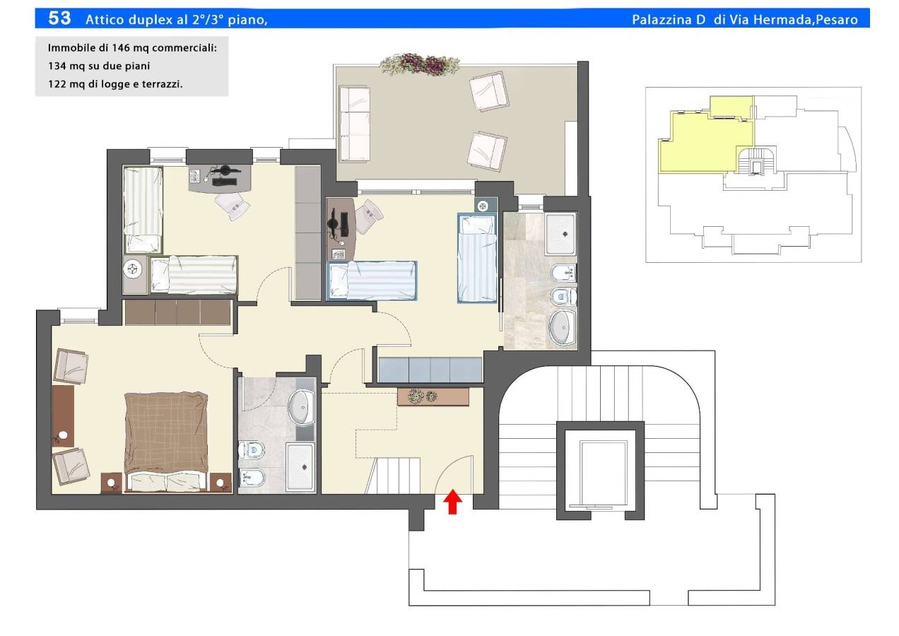 Attico - Mansarda Via Hermada, 26, Soria, Pesaro